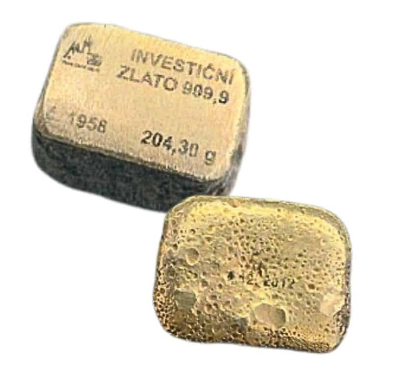 Vnitřní část slitku je dutá, vyplněná neznámou hmotou. Jedinou kontrolou je slitek provrtat nebo rozříznout, abyste viděli vnitřní část!