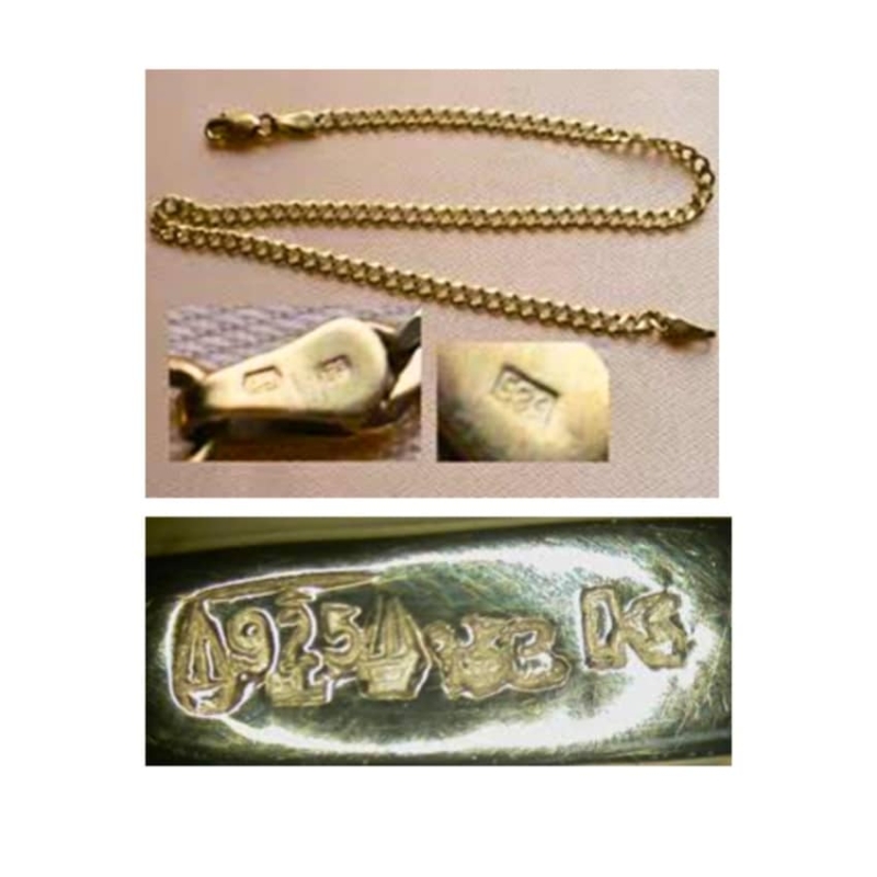 Vyskytují na špercích nízké kvality nebo zcela bez drahých kovů. Často se jedná o mosazné pečetní prsteny nebo masivní řetězy, které byly koupeny jako zlaté. Obvykle mají značku a vyraženou ryzost 750/1000. Rozpoznat je lze dle rytí, které není kvalitně provedené.